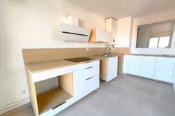 L'appartement offre un séjour lumineux climatisé, avec cuisine semi-ouverte et semi-équipée moderne et fonctionnelle.
