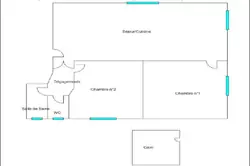 séjour cuisine américaine semi-équipée - 2 chambres avec placards - une salle d'eau - une cave - une terrasse sur parties communes