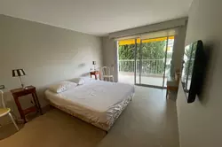 L'appartement offre d'une part un spacieux séjour avec cuisine aménagée et équipée, donnant tous deux sur terrasse, d'autre part une chambre avec sa salle de douches et WC, ainsi qu'une suite parentale donnant sur terrasse.