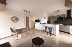 Il dispose également d'un séjour avec cuisine US équipée, d'une salle de douches à l'italienne entièrement rénovée, d'un WC indépendant.