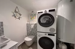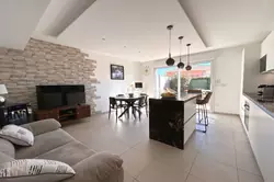 Cet appartement dispose également d'un séjour avec cuisine US équipée, de deux chambres avec rangements, d'une salle de bains et d'un WC indépendant avec zone buanderie.
