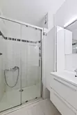 Appartement traversant, bénéficiant d'un petit extérieur pour accueillir une table pour 2 personnes, large séjour, 2 chambre côté cour, salle de douche, wc