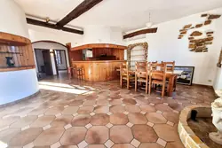 Grand espace de vie avec cuisine américaine de 35 m², cellier, deux chambres, salle de bain et toilette.