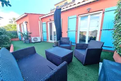 Toutes les pièces ouvrant sur une grande terrasse offrant une belle vue sur les collines et un aperçu mer.