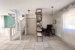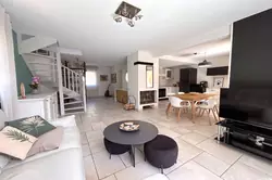 Cette maison dispose également, de plain-pied : d'un séjour, d'une salle à manger avec cuisine US, d'une cheminée à insert, d'un espace bureau d'une buanderie et WC indépendant.