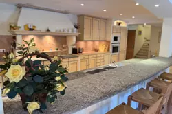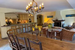 La villa offre un vaste séjour lumineux de 47 m² avec cheminée, une cuisine entièrement équipée, ainsi que quatre suites parentales, alliant confort et intimité.