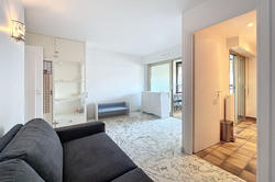 of Center Bay, on the seafront of Juan les Pins. You will enjoy an L-shaped living room and a fitted kitchen, opening onto a west-facing terrace closed in a loggia. You will benefit from a sleeping area, a bathroom and separate toilets. You will have a large dressing room in the entrance and can easily store furniture or clothes in a large cellar on the mezzanine of the building. This apartment, ideal for a pied-à-terre or a rental investment, is sold with a private parking space in the basement, very appreciable in the city center! The residence also has a large room where you can park your bike. The beaches, shops and restaurants are at the foot of the residence, you will only have to put down your suitcases to enjoy them. To visit!