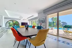 The house offers a splendid sea view, enhanced by an infinity pool seamlessly blending into the horizon. The living area, with its 52 m² double lounge, opening onto this “postcard” sea and pool view, promises unforgettable moments.