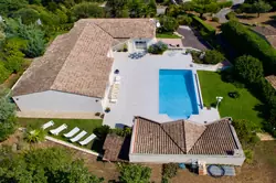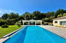 Vallauris, Les Tuillières district, magnificent 280m2 villa on two levels with swimming pool, pool house and sea view, on a plot of 2555m2 of land.
