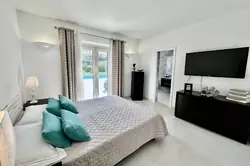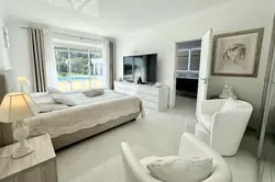 This 80s villa was completely renovated in 2021 with quality materials, featuring a large, bright, multi-exposure living room of 70m2 with fitted kitchen, 4 en-suite bedrooms on one level with shower rooms, baths and toilets. An independent 3-room apartment of approximately 90m2 with garden access, two bedrooms, two shower rooms + toilets, covered terrace. 1 garage.
